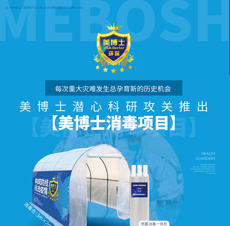 美博士環(huán)保消毒項(xiàng)目有效針對家庭消毒室外公共區(qū)域消毒,疫情期間帶給您最安全放心的守護(hù)。